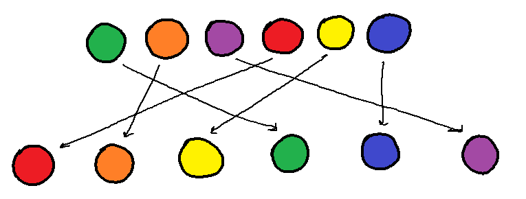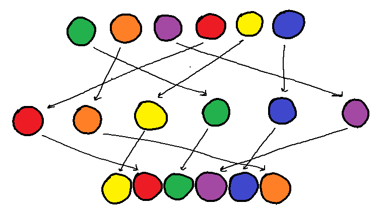 This process actually creates a longer pulse, so we need a second step to un-sort the photons. Luckily for us, at our laser’s wavelength, calcium fluoride has a property called anomalous chromatic dispersion. Anomalous chromatic dispersion means that the blue photons travel faster in the material than the red photons, effectively bringing the blue photons forward and moving the red photons back. Like this: