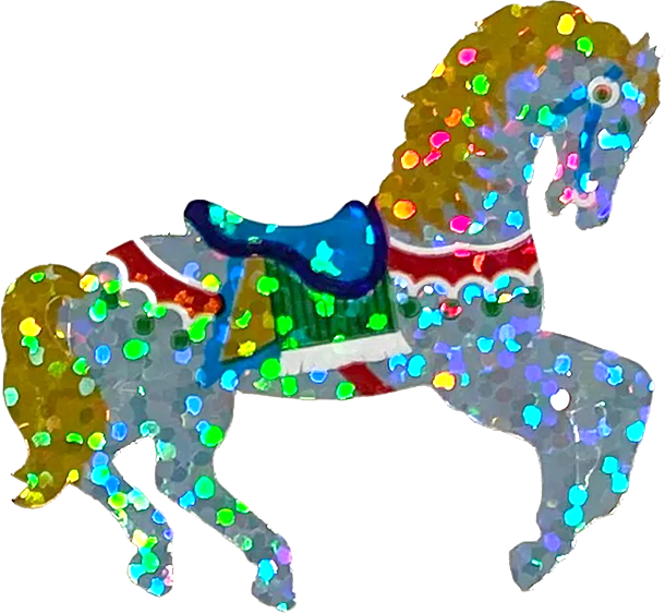 When I was little, sometimes on very special days my mom would take me to The Sticker Store. They had this wall of receipt-paper rolls of Hambly stickers, tigers and horses and rainbows and birthday cakes and tiny, twinkling stars. In my memory, the whole store is dark and empty except for the enormous sticker wall lit by a single spotlight, although from the review photos online that appears not to be accurate. I was allowed to pick out one sticker roll, and tear one sheet off. I took my time with this impossible decision–faced with all the riches of the world, how could a person choose just one? I fell in love, and I’ve been in love ever since.