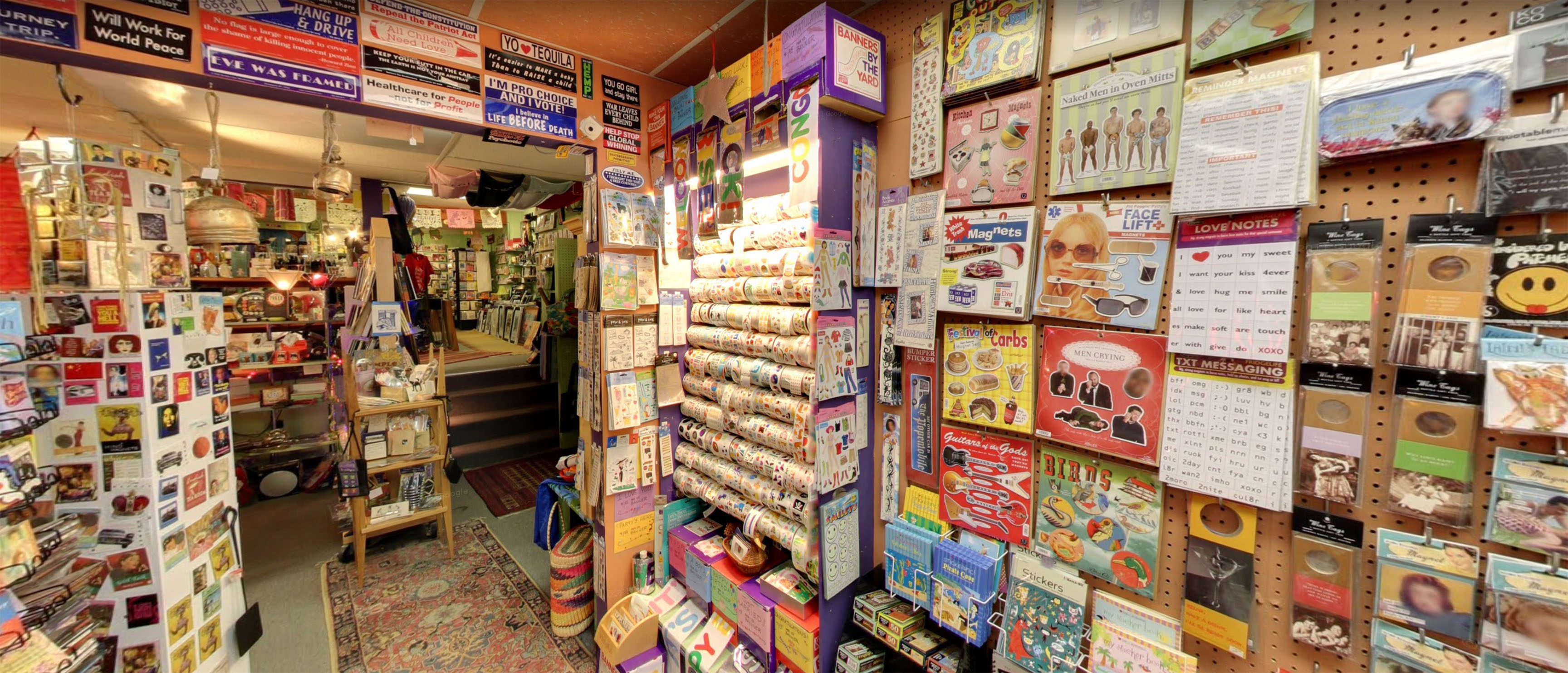 The real-world sticker store, Avalon on Grand, was a knick knacks shop in St. Paul, Minnesota full of a riot of greeting cards, toys, gag gifts, jewelry, books, magnets, mugs, disco balls, kooky signs, and oriental rugs. It closed sometime in those odd intervening years after I’d left Minnesota but still stopped through enough that I thought I still knew the city. Maybe Avalon was a victim of the pandemic or of changing tastes. It had always been slightly out of time, even back in 2009 when my mom took me there after school; the Hambly stickers that I loved so much were designed back in the 1980’s, and according to Harry Hambly’s obituary, Hambly Studios closed down in 2012, leaving behind only backlogs of holographic stickers in midwestern tchotchke stores. Carrie's Sticker Collection has the best archive of them that I’ve found online.